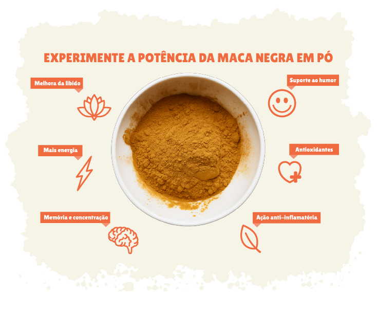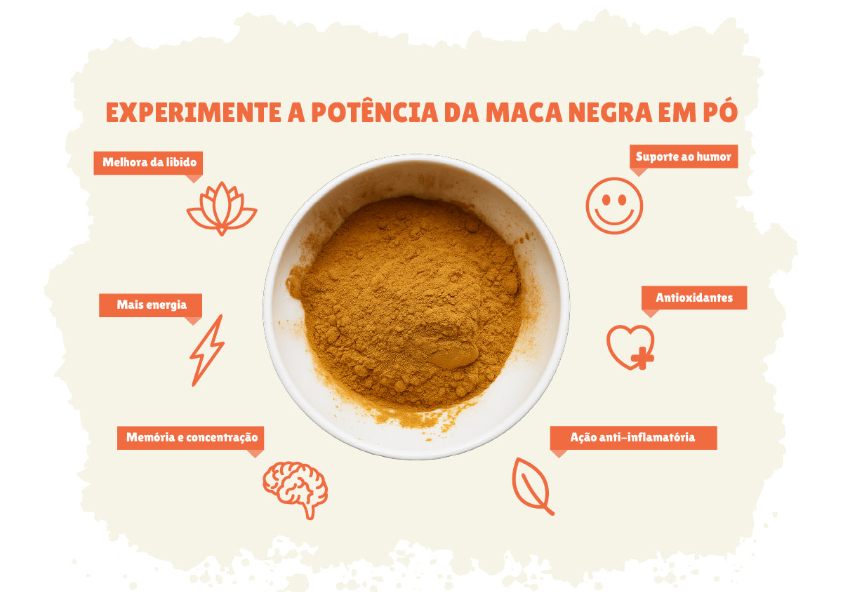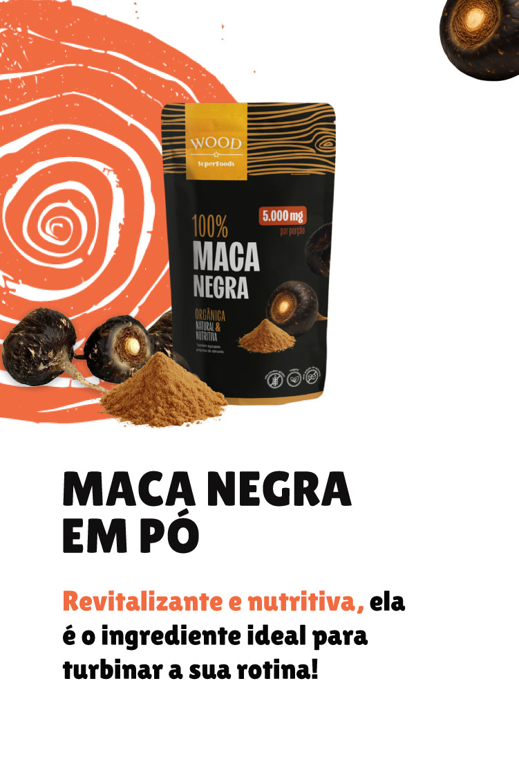 Experimente o sabor e a pureza de nossa maca negra em pó. Perfeita para quem quer mais energia com um impulso natural.