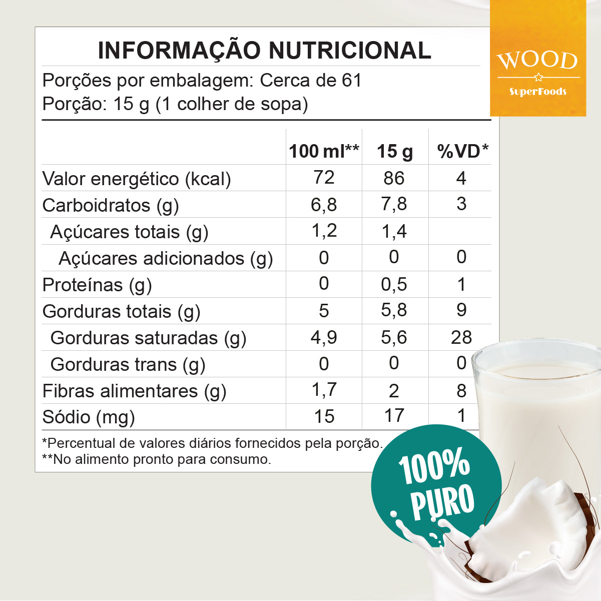 O leite de coco em pó Wood é feito a partir da polpa do coco, cuidadosamente desidratada para preservar o sabor natural e a textura cremosa. Ideal para quem busca uma alternativa vegetal de alta qualidade, oferecemos o melhor da natureza para o seu dia, trazendo leveza, nutrição e praticidade a cada preparo.
