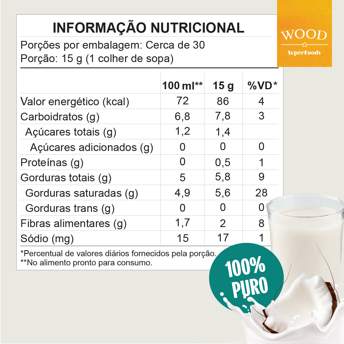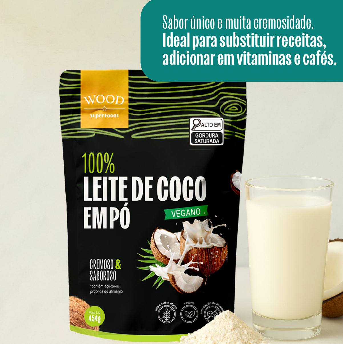 O leite de coco em pó Wood é feito a partir da polpa do coco, cuidadosamente desidratada para preservar o sabor natural e a textura cremosa. Ideal para quem busca uma alternativa vegetal de alta qualidade, oferecemos o melhor da natureza para o seu dia, trazendo leveza, nutrição e praticidade a cada preparo.
